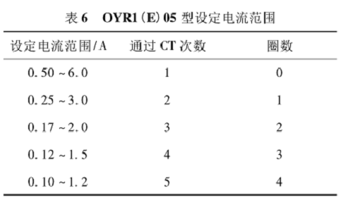 低壓電動機保護器的額定電流設置,除取決于輸出繼電器的觸點容量外,還取決于采集主回路電流信號的電流互感器(Current Transformer,CT)。一般額定電流值不大時,采用內置 CT 輸出的信號進行處理。但是,當工作電流太小,未達到0. 5 A 時,可以通過增加電纜穿過 CT 上窗口的圈數來提高二次感應電流,達到與保護線路的匹配,如表 6 所示。