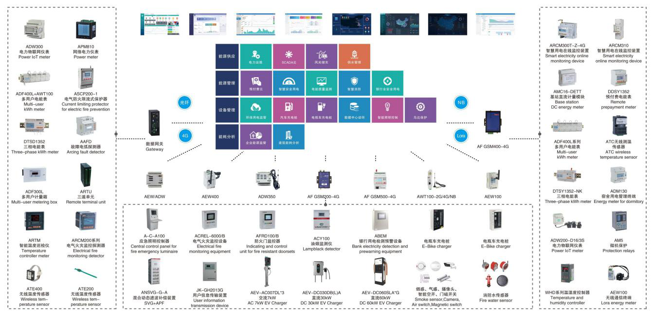 安科瑞根據多年來的項目經驗,結合用戶實際需求,開發了各類有線、區域無線、廣域無線通訊產品,包括網關和終端設備。支持RS485、以太網、LORA、ZigBee、GPRS、4G、NB-IOT等多種通訊方式,隨著5G建設步伐的加快,未來將會有越來越多的通訊方式融入產品,服務于泛在電力物聯網建設。