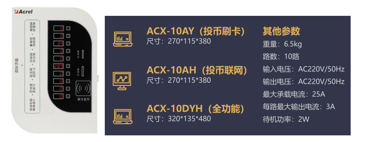 支持射頻卡刷卡充電、校園一卡通刷卡充電、投幣和掃碼充電。