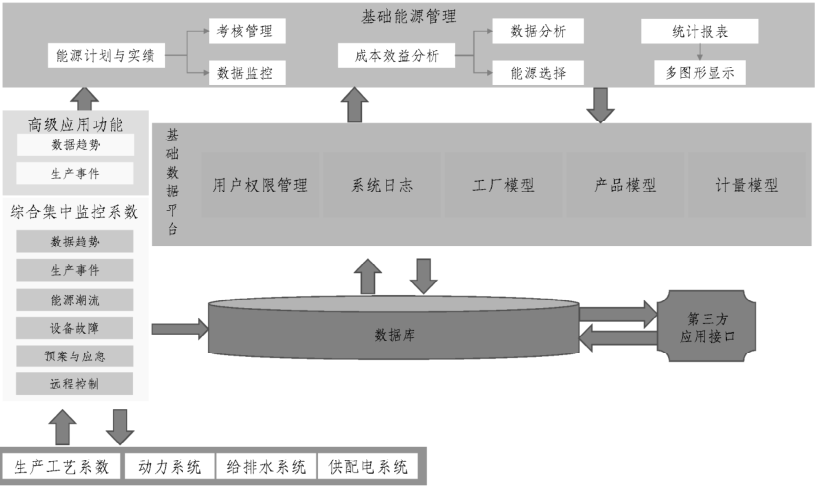 積極推動互聯(lián)網(wǎng)、大數(shù)據(jù)、人工智能等新一代信息技術(shù)與鋼鐵制造的深度融合是鋼鐵企業(yè)下一步研發(fā)重點[9]。能源管理系統(tǒng)基于自動化技術(shù)、網(wǎng)絡(luò)通信技術(shù)、實時數(shù)據(jù)庫技術(shù)、數(shù)據(jù)分析及預(yù)測技術(shù),對鋼鐵企業(yè)提供數(shù)據(jù)定制化管理服務(wù),優(yōu)化能源管理。該系統(tǒng)建成后,將為鋼鐵企業(yè)的管理、生產(chǎn)計劃、調(diào)度決策及OA提供準確、實時的生產(chǎn)工藝計量數(shù)據(jù),對于構(gòu)筑信息化工程、實施精細化生產(chǎn)和精細化管理是十分重要的。可以根據(jù)系統(tǒng)所采集的數(shù)據(jù)進行公司級、廠際級能源核算,實現(xiàn)計量系統(tǒng)分級化管理,提高計量信息化管理水平,使計量管理更精細、更準確、更高效。是鋼鐵企業(yè)通往節(jié)能降耗,減員增效路徑上的重要“橋梁”。
