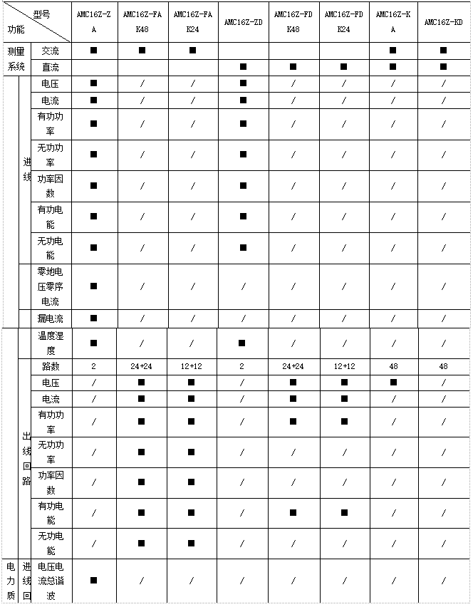 遙測:三相電壓、電流、有功功率、無功功率、視在功率、功率因數(shù)、有功電能、無功電能、電纜溫度,系統(tǒng)頻率、零序電流、零地電壓、漏電流、機柜溫度、機柜濕度、開關(guān)狀態(tài)、電壓/電流諧波含量、電流/功率;