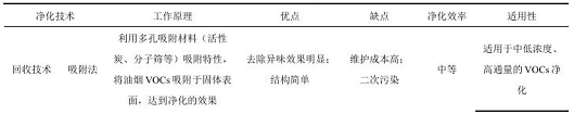 表 1 油煙 VOCs 凈化技術工作原理與性能對比