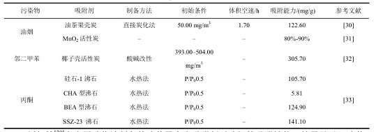 了用于VOCs處理的吸附劑性能和工作條件。