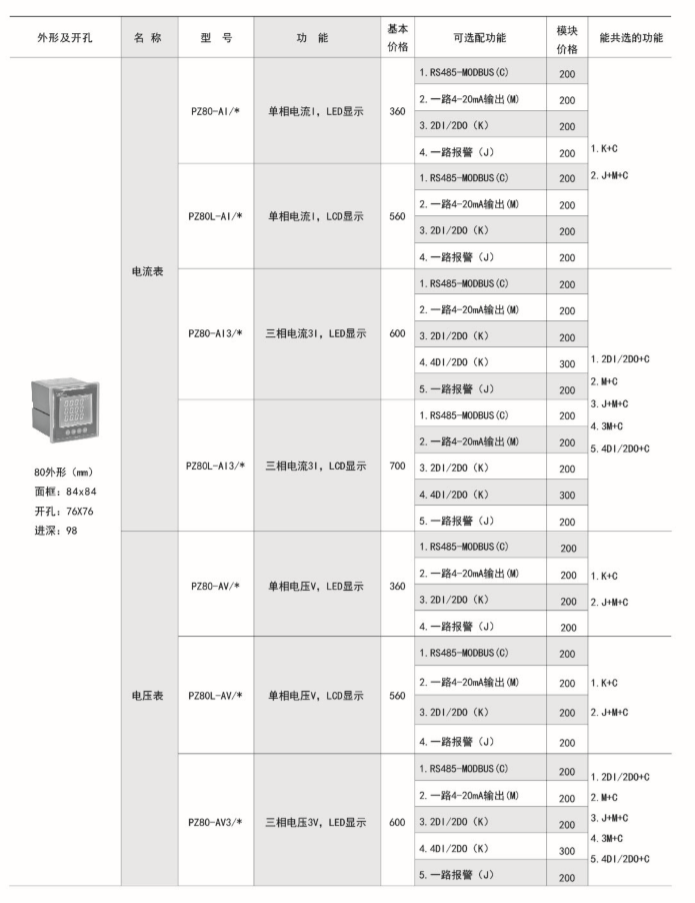 PZ系列交流檢測儀表