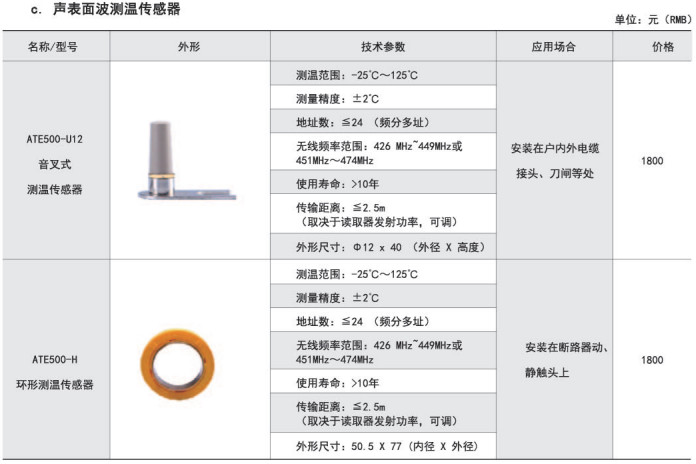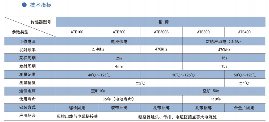 適用于高低壓開關柜內電纜接頭、斷路器觸頭、刀閘開關、高壓電纜中間頭、干式變壓器、低壓大電流等設備的溫度監測。
