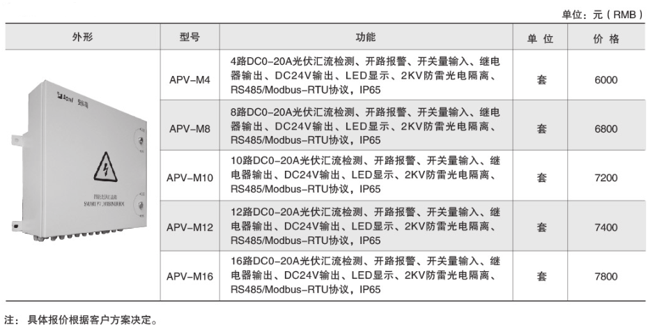APV系列智能光伏匯流箱主要作用就是對光伏電池陣列的輸入進行一級匯流,用于減少光電池陣列接入到逆變器的連線,優化系統結構,提高可靠性和可維護性。