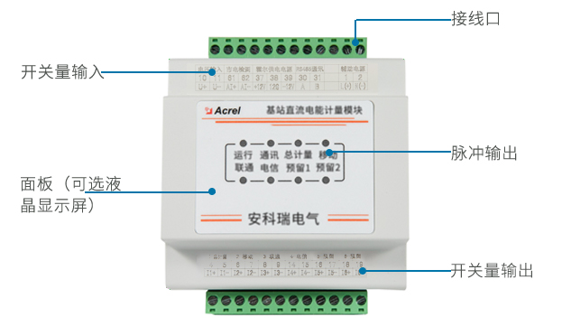 AMC16-DETT 基站直流電能計(jì)量模塊主要是針對(duì)有共享需求,且開(kāi)關(guān)電源無(wú)分用戶電量計(jì)量功能的基站而設(shè)計(jì)的。儀表可對(duì)六個(gè)回路的直流電能進(jìn)行計(jì)量,并可為配套的霍爾傳感器提供工作電流,同時(shí)可通過(guò)上位機(jī)軟件實(shí)現(xiàn)零漂校準(zhǔn),具有遙測(cè)、遙 信、遙調(diào)、實(shí)時(shí)電量計(jì)量、供電質(zhì)量異常告警、信息存儲(chǔ)及處理、信息交互等功能。該模塊可分別計(jì)量三家運(yùn)營(yíng)商的直流用電量,為基站節(jié)能改善提供詳細(xì)的數(shù)據(jù)依據(jù),為直流配電設(shè)備提供分項(xiàng)計(jì)量解決方案。