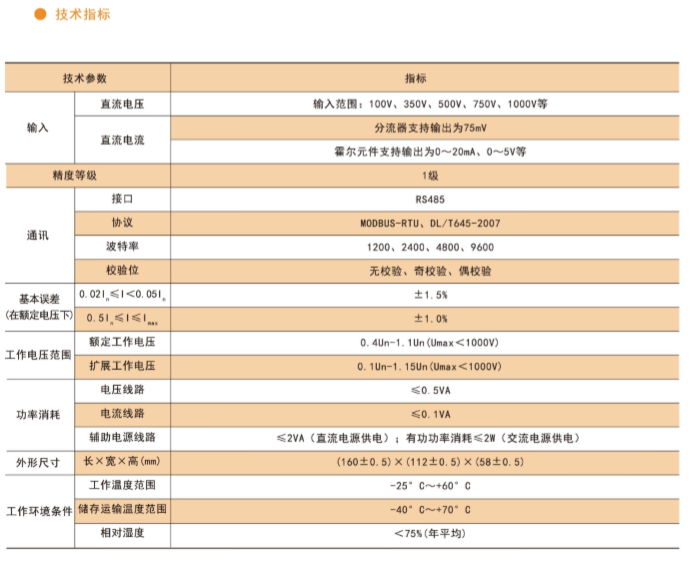 技術要求:電壓輸入DC750V,電流輸入DC300A/75mV