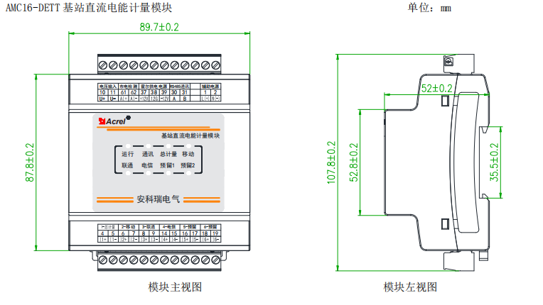 AMC16-DETT基站計量表電能計量模塊主要是針對有共享需求,且開關電源無分用戶電量計量功能的基站而設計的。儀表可對六個回路的直流電能進行計量,并可為配套的霍爾傳感器提供工作電流,同時可通過上位機軟件實現零漂校準,具有遙測、遙信、遙調、實時電量計量、供電質量異常告警、信息存儲及處理、信息交互等功能。該模塊可分別計量三家運營商的直流用電量,為基站節能改善提供詳細的數據依據,為直流配電設備提供分項計量解決方案。