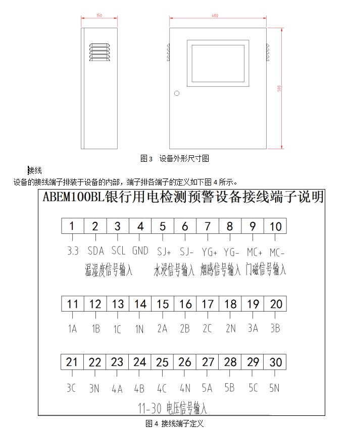 ABEM100BL型銀行用電檢測預警設備(以下簡稱“設備”)是安科瑞自主研發的集監視、報警、管理和上傳于一體的設備,該設備主要安裝現場,采用壁掛式的安裝方式,用來采集現場的各種電參量和信號,主要包括故障電弧、剩余電流電流、溫度、電壓、電流、功率電能等,設備可以通過4G信號上傳至云平臺。