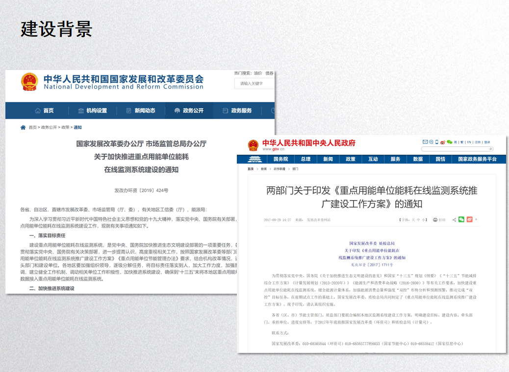 為貫徹落實《重點用能單位節能管理辦法》(國家發改委2018年第15號令)、《國家發改委關于開展重點用能單位“百千萬”行動有關事項的通知》(發改環資〔2017〕1909號)和國家發改委辦公廳《關于發布“百家”重點用能單位名單的通知》(發改辦環資〔2019〕351號),深入推進重點用能單位能源消耗總量和強度“雙控”工作,各省市相關主管部門陸續發出通知,要求納入“百千萬”行動的重點用能單位落實節能主體責任,加強節能管理,并按照《重點用能單位能耗在線監測系統推廣建設工作方案》(發改環資〔2017〕1711 號)等要求,建設接入端系統并按時接入省級重點用能單位能耗在線監測平臺,對未按要求開展重點用能單位能耗在線監測系統建設、未配備和使用能源計量器具的,依法依規責令限期整改,逾期不整改或整改未達到要求的,嚴格按照有關法律法規進行處罰。